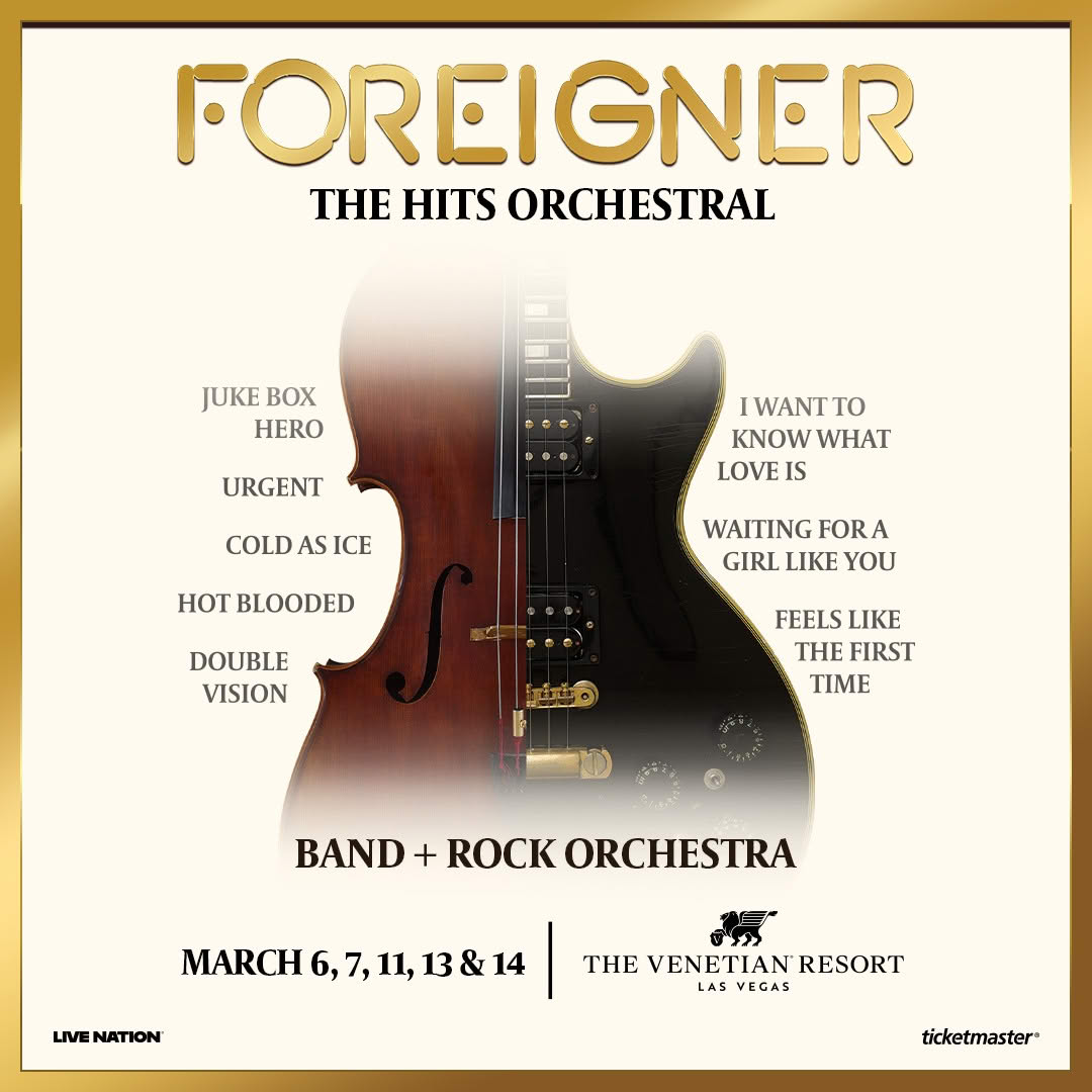 Foreigner has announced a special 50th-anniversary orchestral tour for early 2026, which will be featuring a 20-piece orchestra conducted by Chuck Palmer with arrangements by Dave Eggar. The tour kicks off with a Las Vegas residency at the Venetian from March 6-14, 2026, followed by California dates in March. Click here for tour dates.